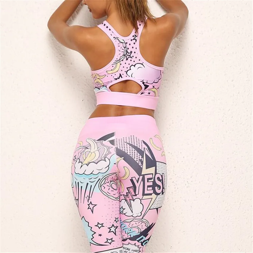 2019 New Pad Fitness Suit Boom Letter Print Sport Suit Women Gym Clothing Tracksuit Women Running Y only US $15.43