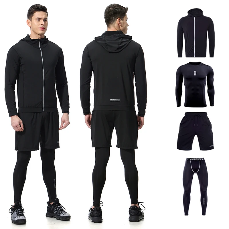 4PCS Sport Suit Men Men's Gym Training Fitness Sportswear Athletic Workout Clothes Suits Running Jogging Mens Sports Clothing : Click here