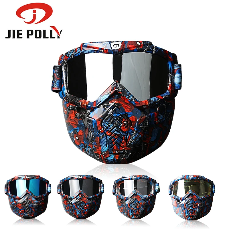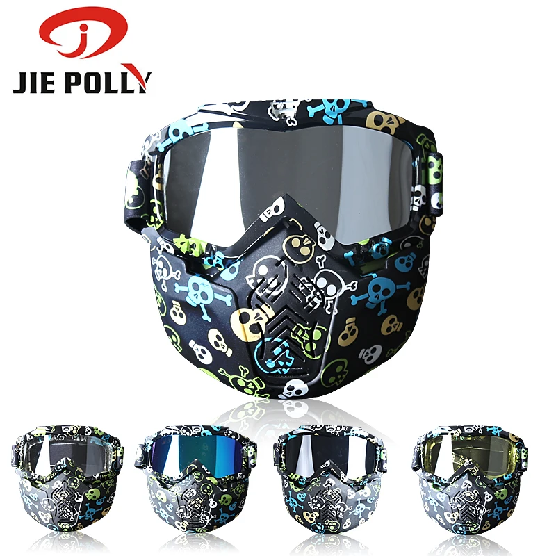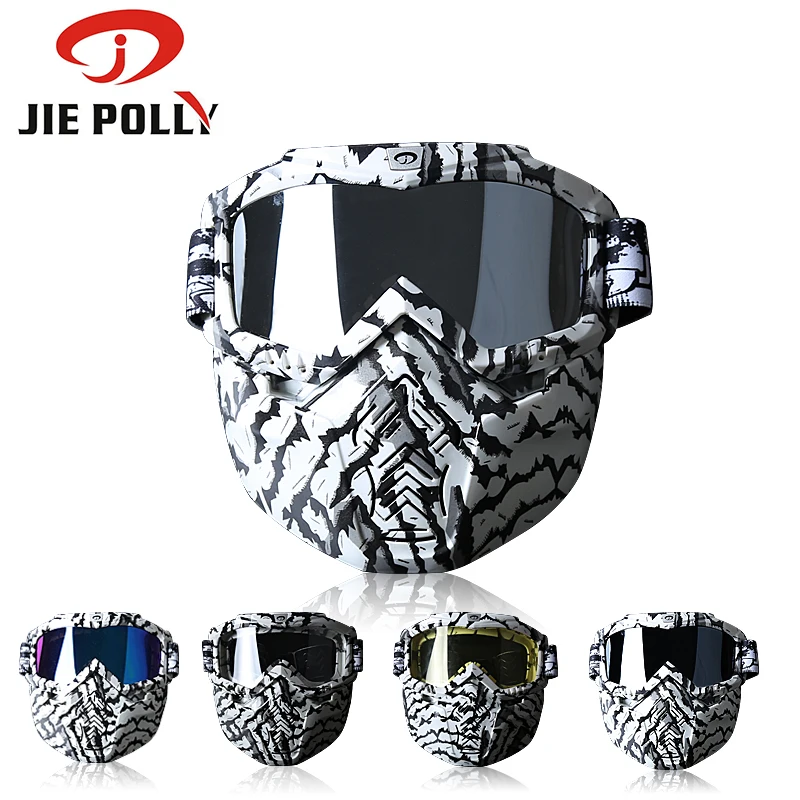 Jiepolly Motocross Goggles Motorcycle Detachable Mask Half Face Helmet Goggles Off Road Bike Sunglasses Wind-proof MTB Glasses : Click here