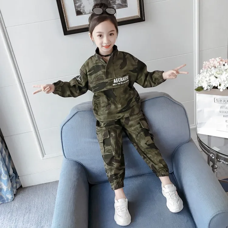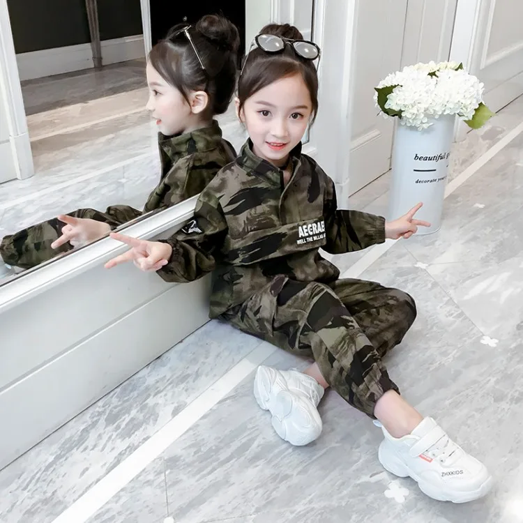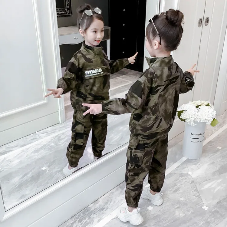 Girls Camouflage Clothing Set Spring Autumn Sportwear Clothes New Children Military Uniform 2 Pcs T only US $32.55